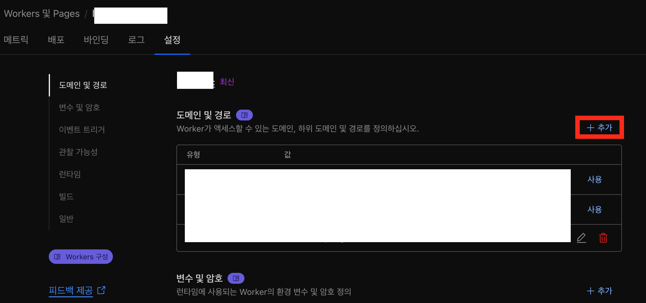 붉은 박스 안의 값들은 추후 cloudflare 의 세팅을 마치면 사용할 예정입니다.
