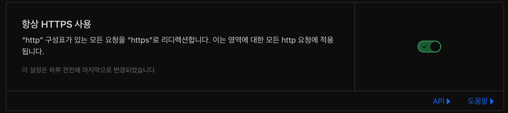 여기서 스크롤을 조금 내려보면 항상 HTTPS 사용 이란 설정이 있는데, 활성화 시켜줍니다.