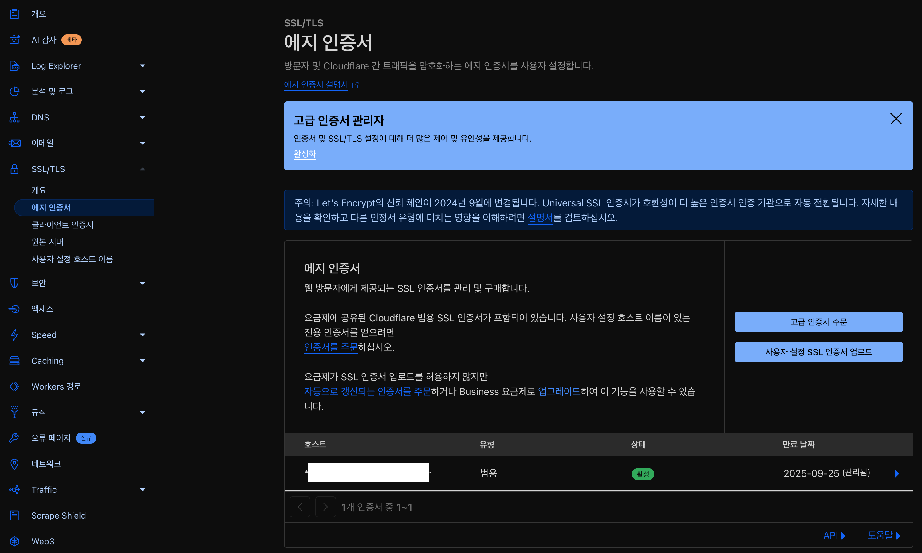 위의 과정이 완료되었다면 다음과 같이 엣지 인증서가 생성되었을 것입니다. (상태는 아직 활성 상태가 아닐 수 있습니다)