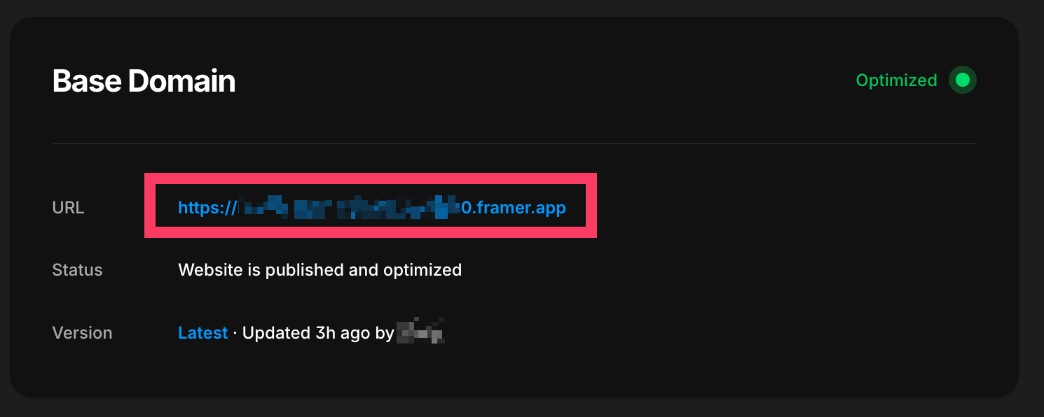 framer 의 기본 도메인 사용시, 링크시에 기존 도메인 주소가 노출되는 경우가 있어 아래와 같이 수정합니다.
