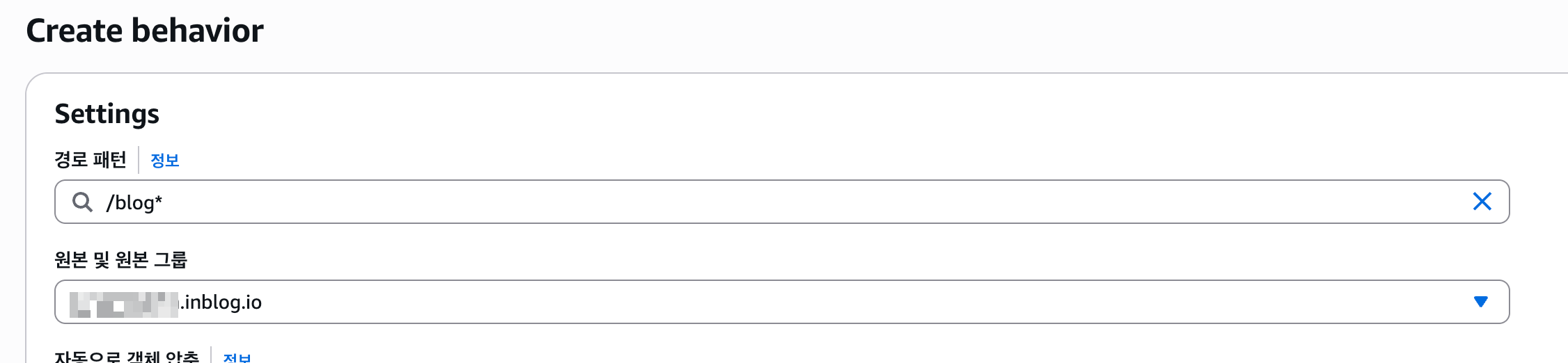 Origin domain 에 들어갈 값은 inblog 에서 생성한 기본 주소를 선택해줍니다. 그리고 원본 생성을 해줍니다.