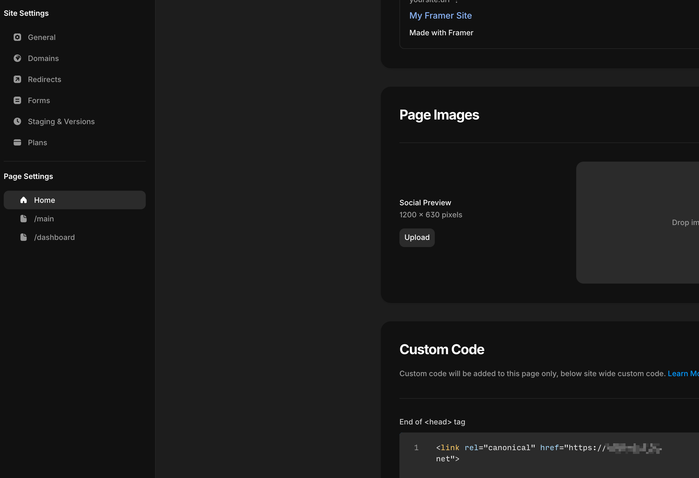 이렇게 하면, Framer 에서도 기존의 canonical 태그 대신 우리가 작성한 태그를 붙여서 서비스합니다.