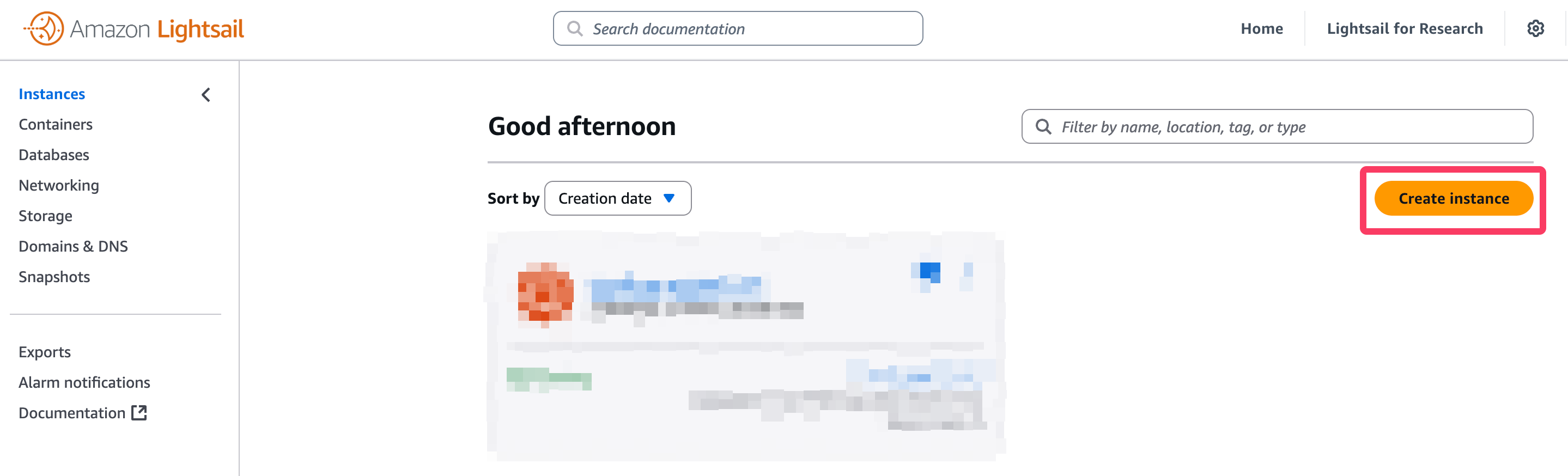 Aws 메인 화면에서 Lightsail 서비스를 검색 및 클릭합니다.