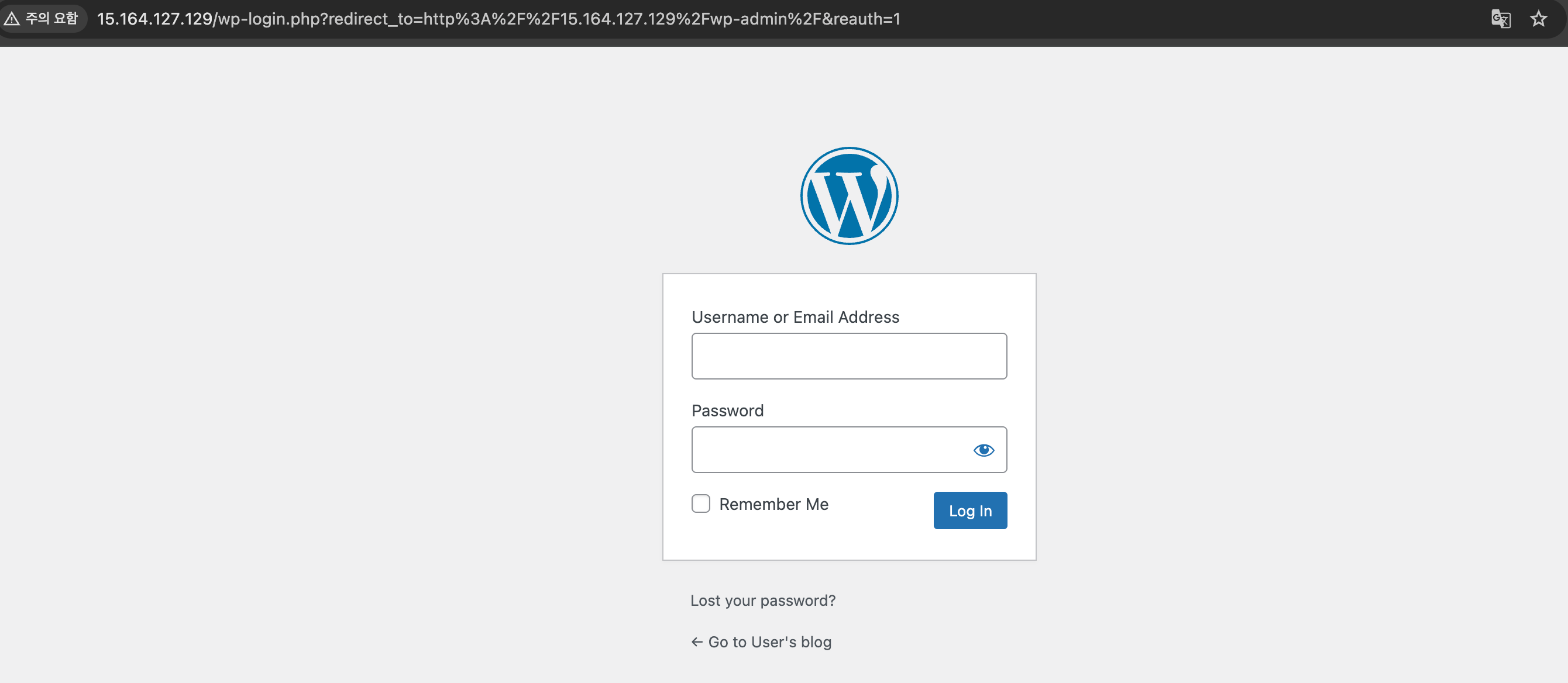 http://[워드프레스 ip]/wp-admin 으로 접속해보면 관리자 페이지를 확인 가능합니다.