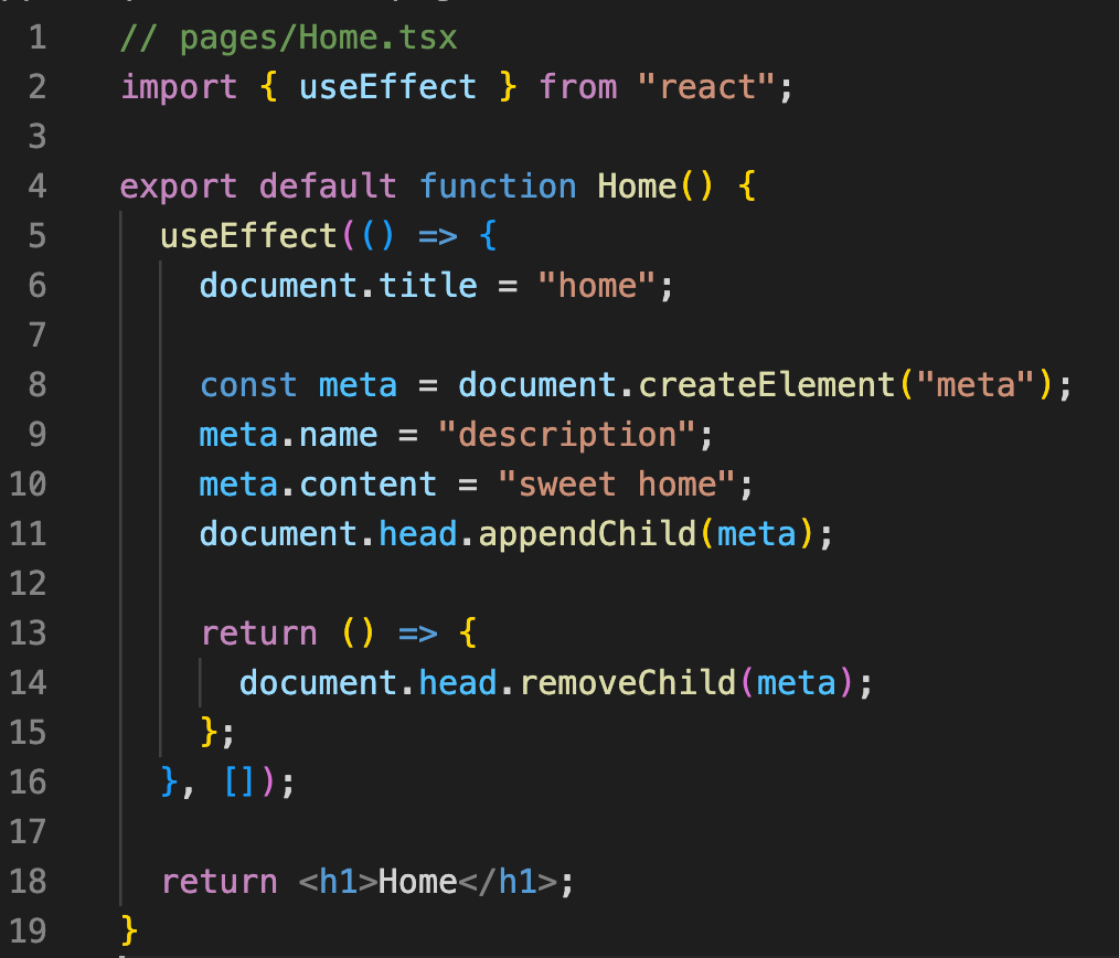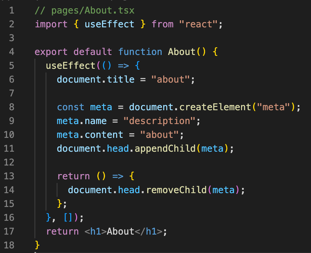 - SPA 는 서버에서 HTML 을 완성된 형태로 제공하지 않기 때문에, 각 페이지 진입 시점에 자바스크립트를 통해 메타 정보를 동적으로 생성해줘야 합니다.