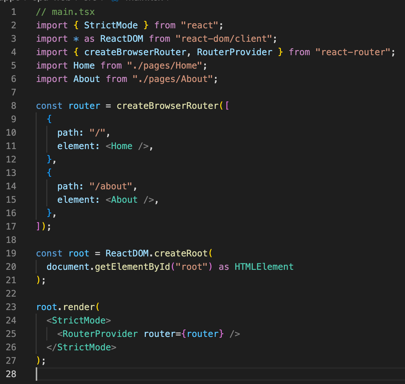 Home 과 About 페이지를 가진 간단한 SPA 입니다.